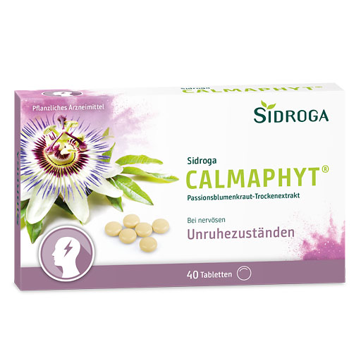 Ausgewählte pflanzliche Arzneimittel können hier eine Alternative sein, denn sie vereinen positive Wirkung mit meist hoher Verträglichkeit, ohne abhängig zu machen. Sidroga CalmaPhyt® enthält 100% Passionsblumenkraut-Trockenextrakt als pflanzlichen Wirkstoff und ist in Absprache mit dem Arzt auch für eine längere Anwendung geeignet. Das pflanzliche Arzneimittel wird zur Beruhigung bei nervösen Unruhezuständen angewendet.